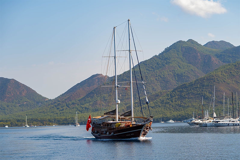 Marmaris çıkışlı gulet turları, mavi yolculuk tatillerinin vazgeçilmezidir. Ahşap yapıları ve geniş güverteleri ile guletler hem aileler hem de arkadaş grupları için idealdir.